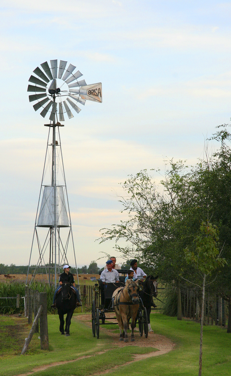 Paseos en sulky, paseos a caballo, huerta orgánica, cancha de fútbol y visitas guíadas al pueblo incluídas en tu día de campo.